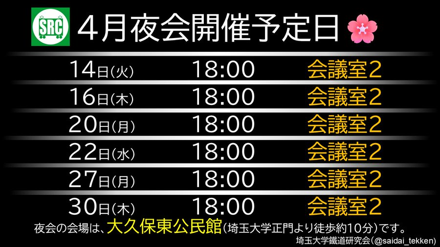 夜会の会場は「大久保東公民館」となっております。夜会の見学にあたって、TwitterやInstagramのDMで予めご連絡いただけると幸いです。
