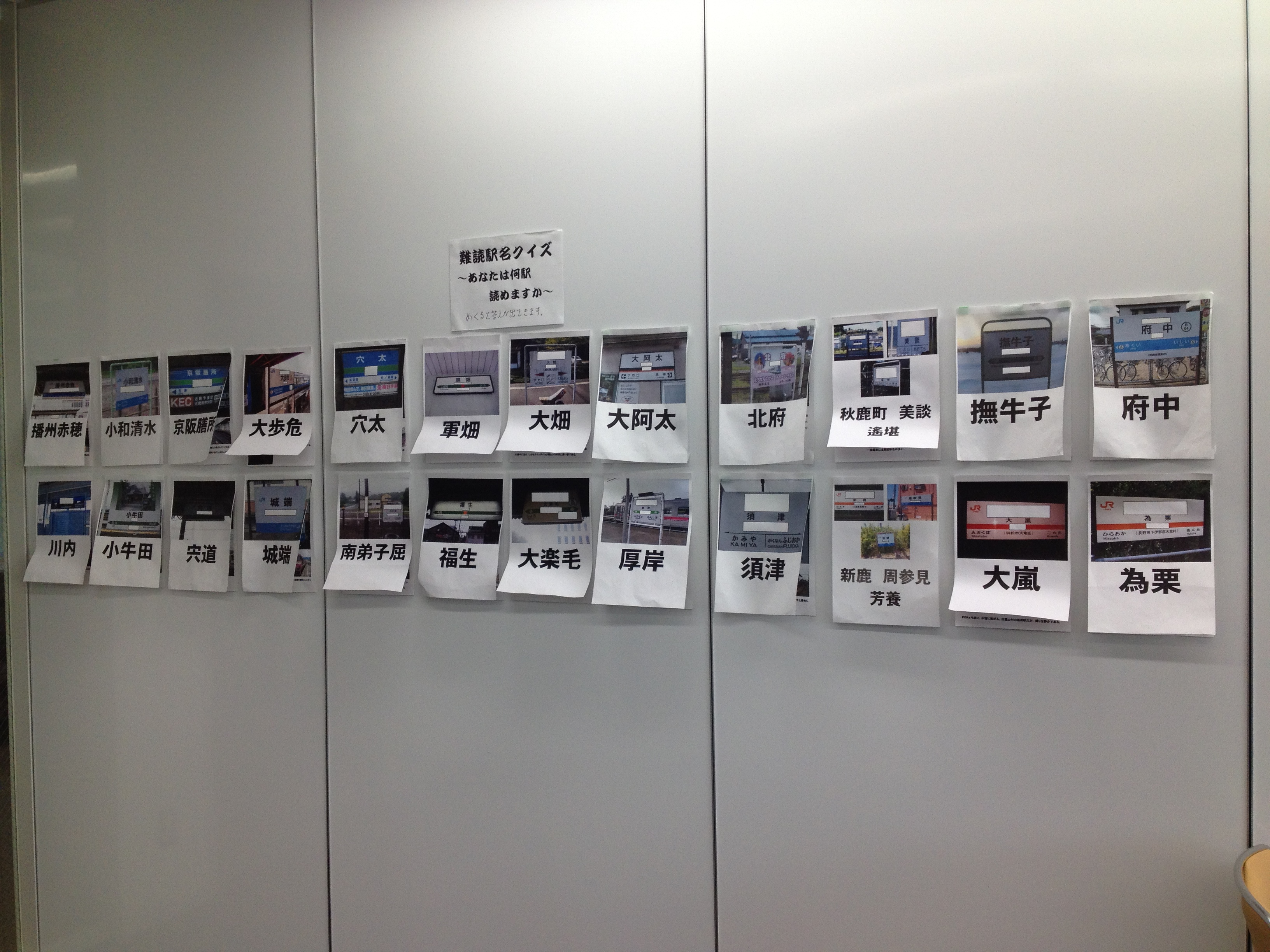 ▲入り口入るとすぐの所に難読駅名コーナー。あなたはいくつ読めますか?