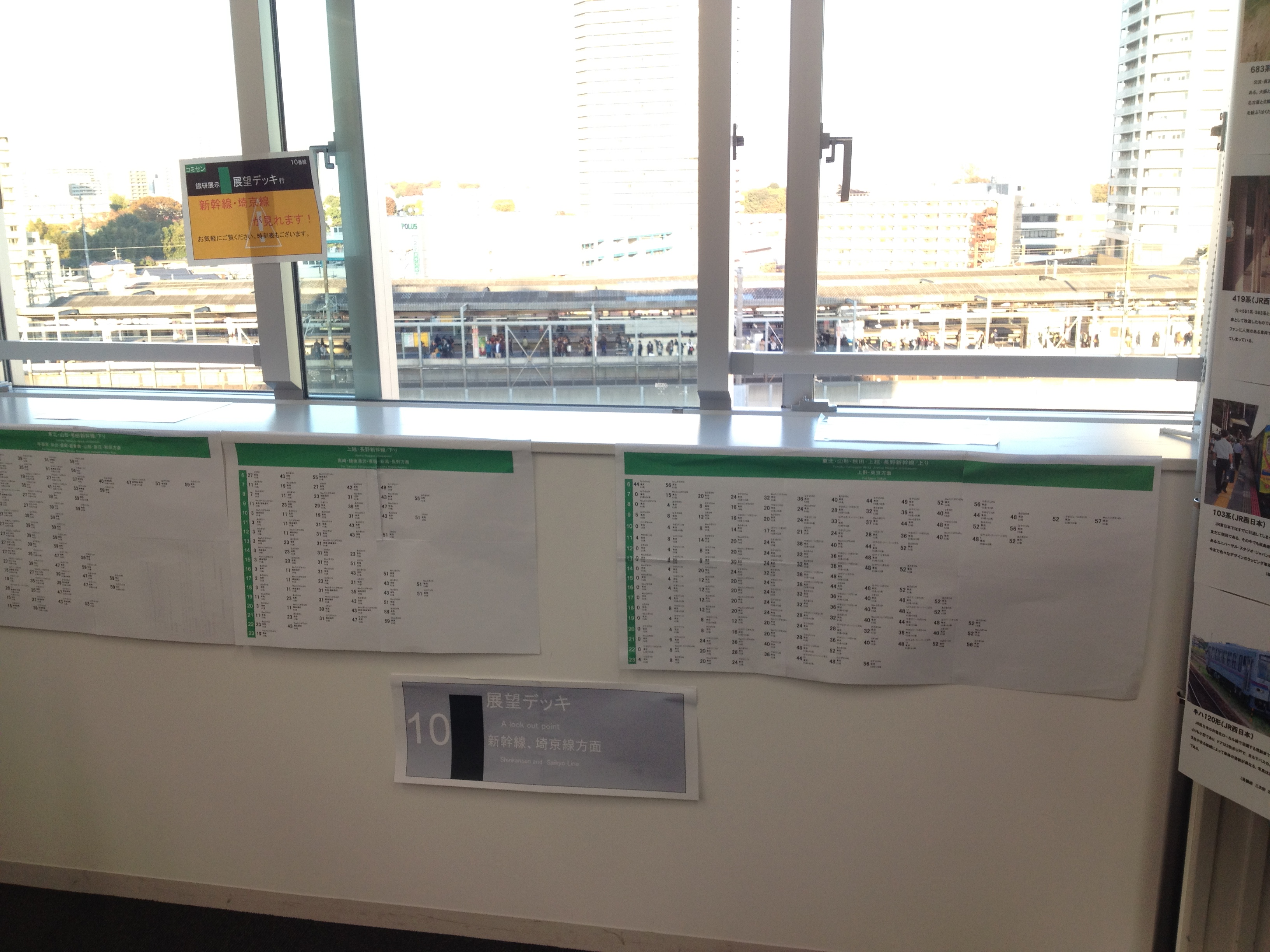 準備活動の記事でも少しだけ紹介いたしましたが、今回はなんと会場から武蔵浦和駅が一望できるという素晴らしいロケーションの部屋での実施となりました! そのため、展望コーナーを設け、走行する新幹線や埼京線の車両をお楽しみいただけるようにしました!