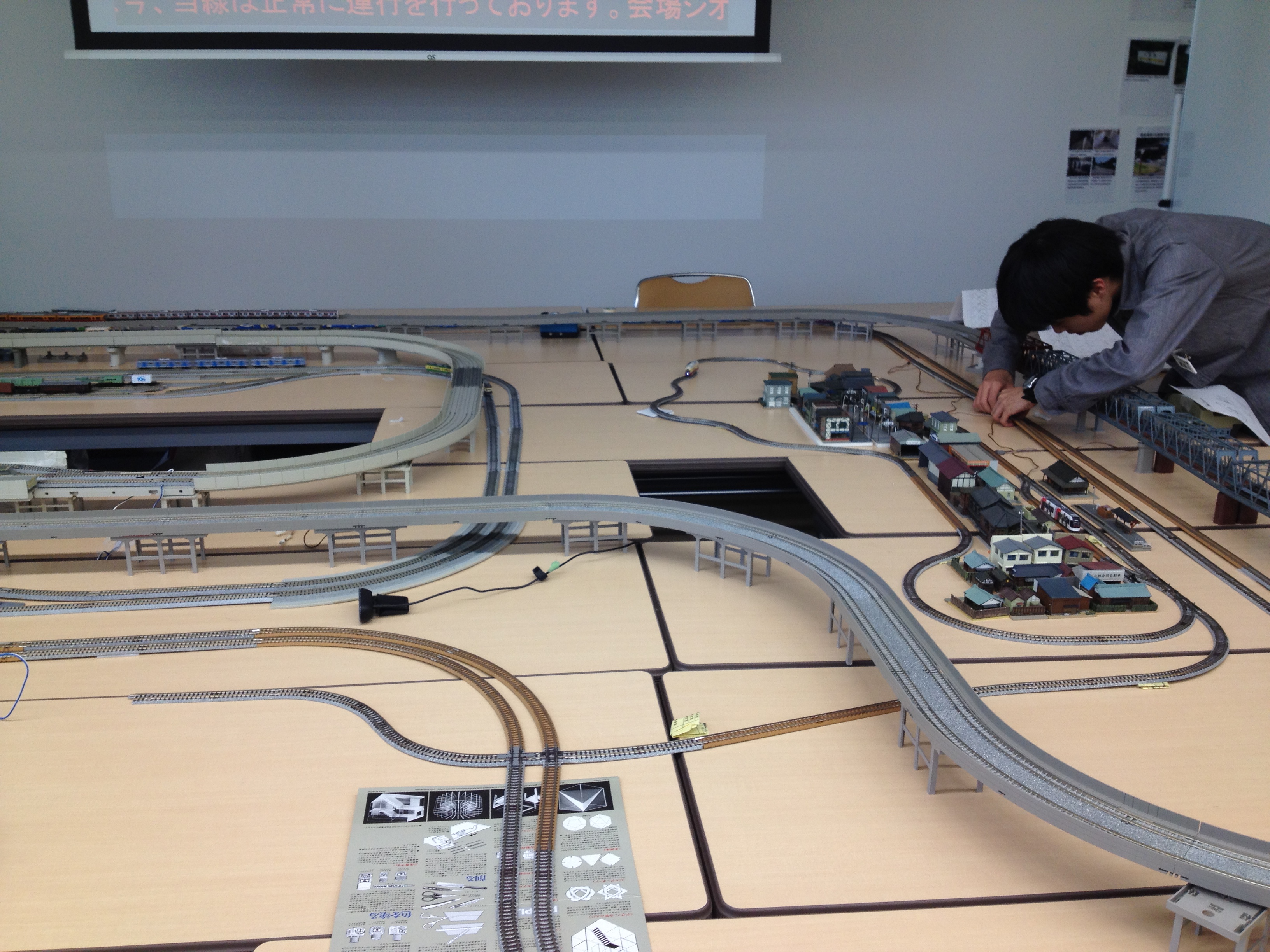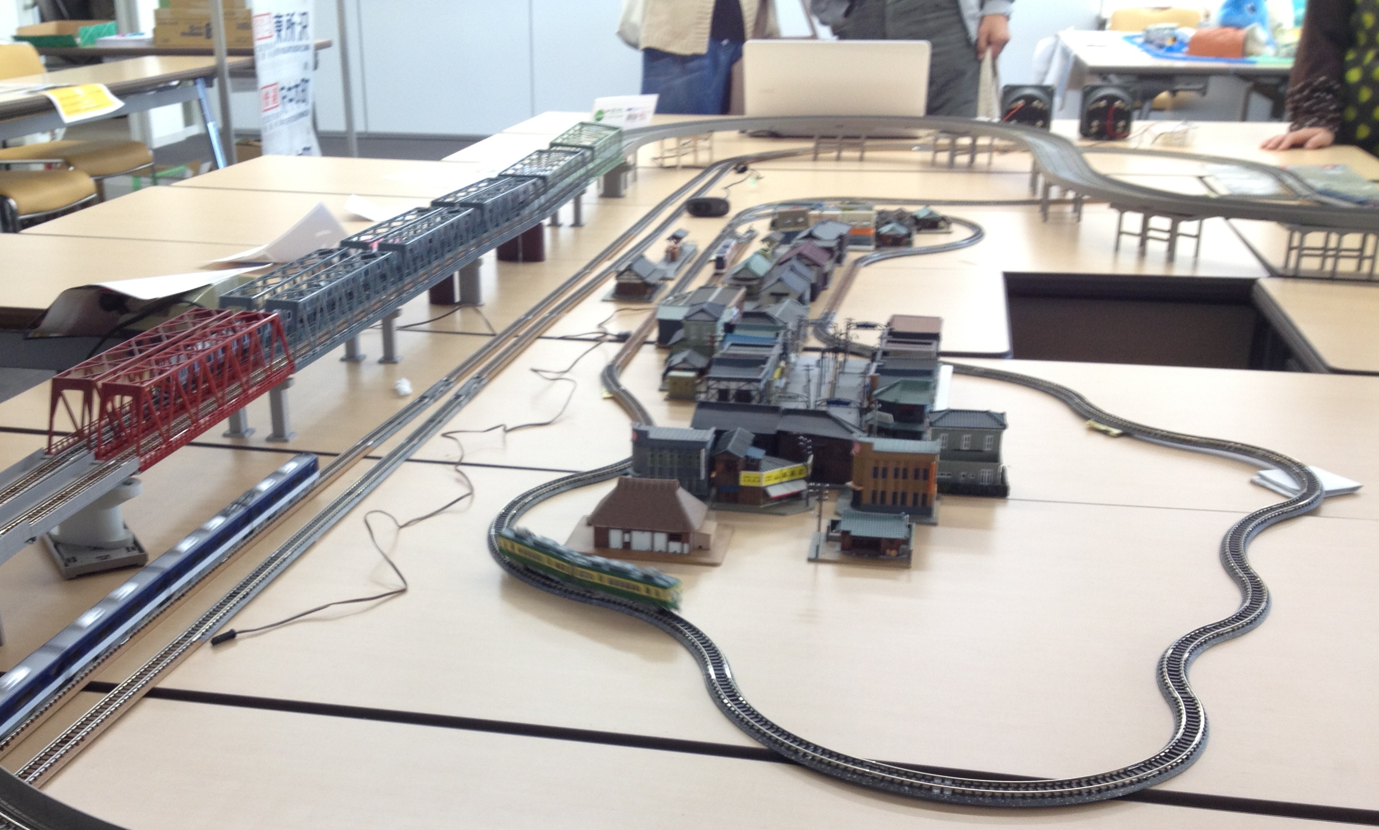 ▲模型レイアウト「コミセン」バージョンです。レイアウトを組みなおして新規のものにできればよかったのですが、工期の関係上基本設計はむつめ祭のものを踏襲しています。ただし、むつめ祭時の経験を生かし細部で配線を組み直しているため細かいところを眺めてみるといろいろ違う部分が見えてくるかもしれません。