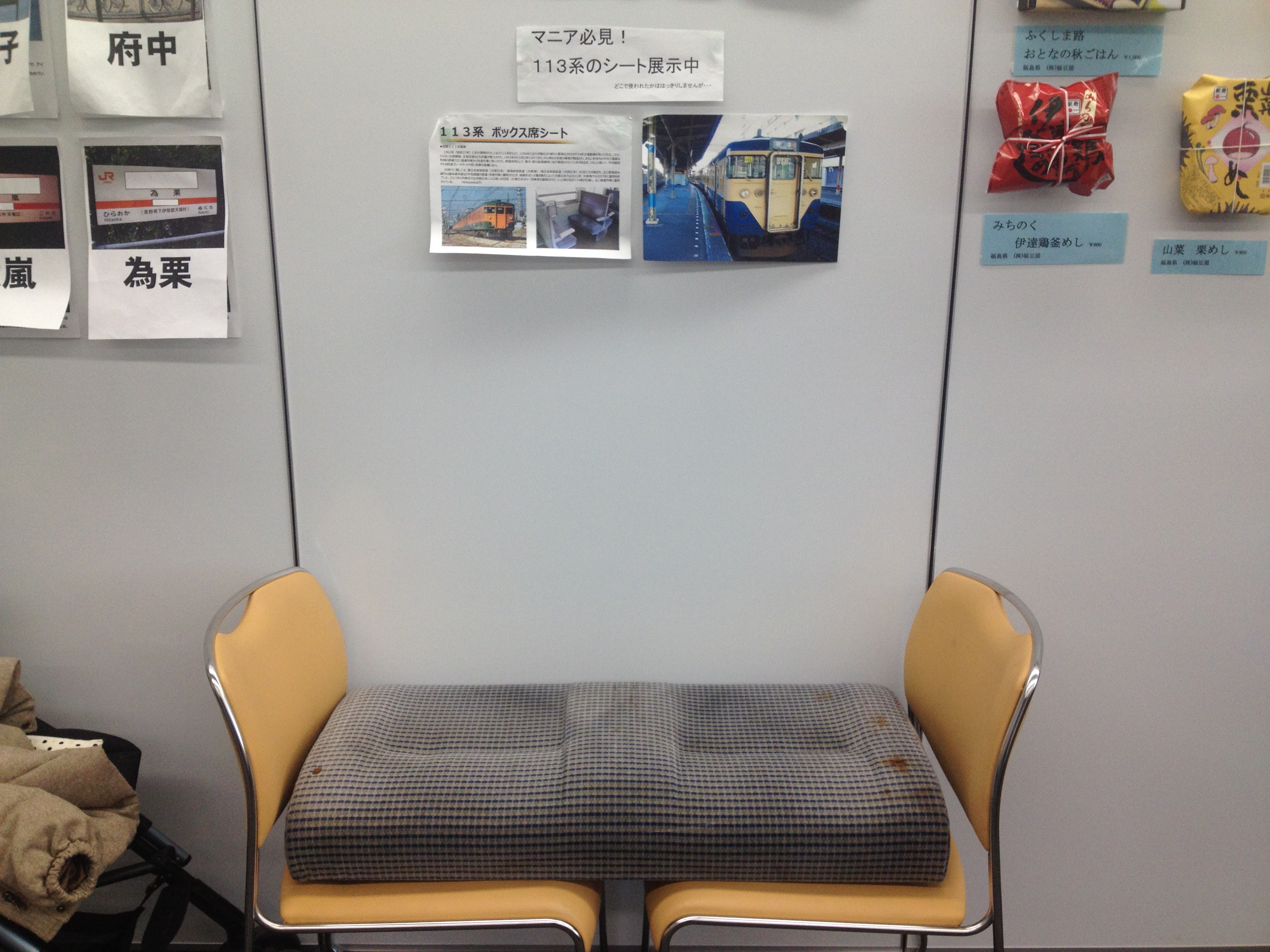 ▲113系のシートもむつめ祭に引き続き来場しました。本物ならではの質感がいい感じです。