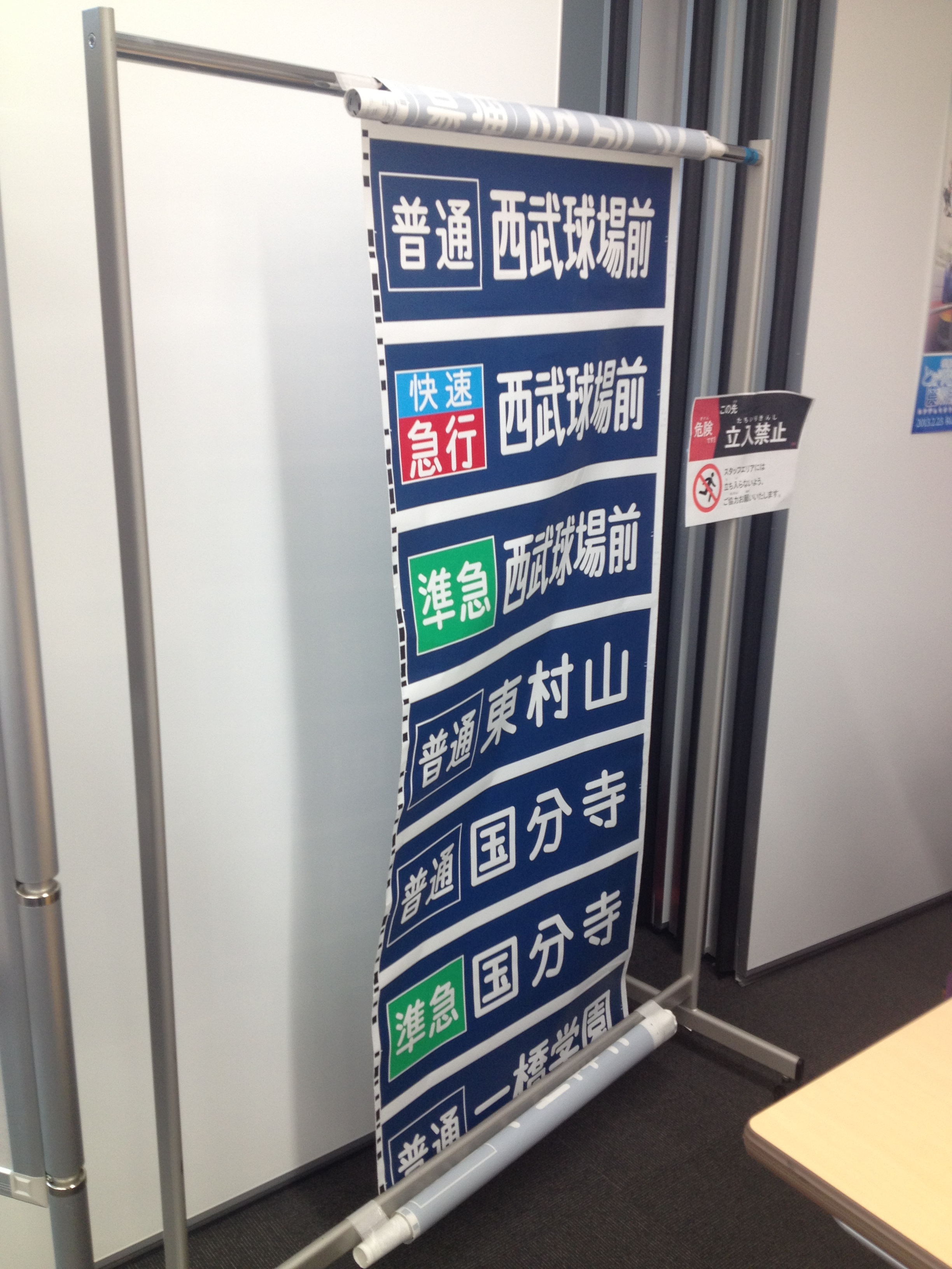 ▲方向幕については今回展示方法を工夫してみました。ふとした思いつきでやってみましたが壁に吊るすのに比べると予想以上にいい感じなので次回以降の展示でも生かしていきたいところです。