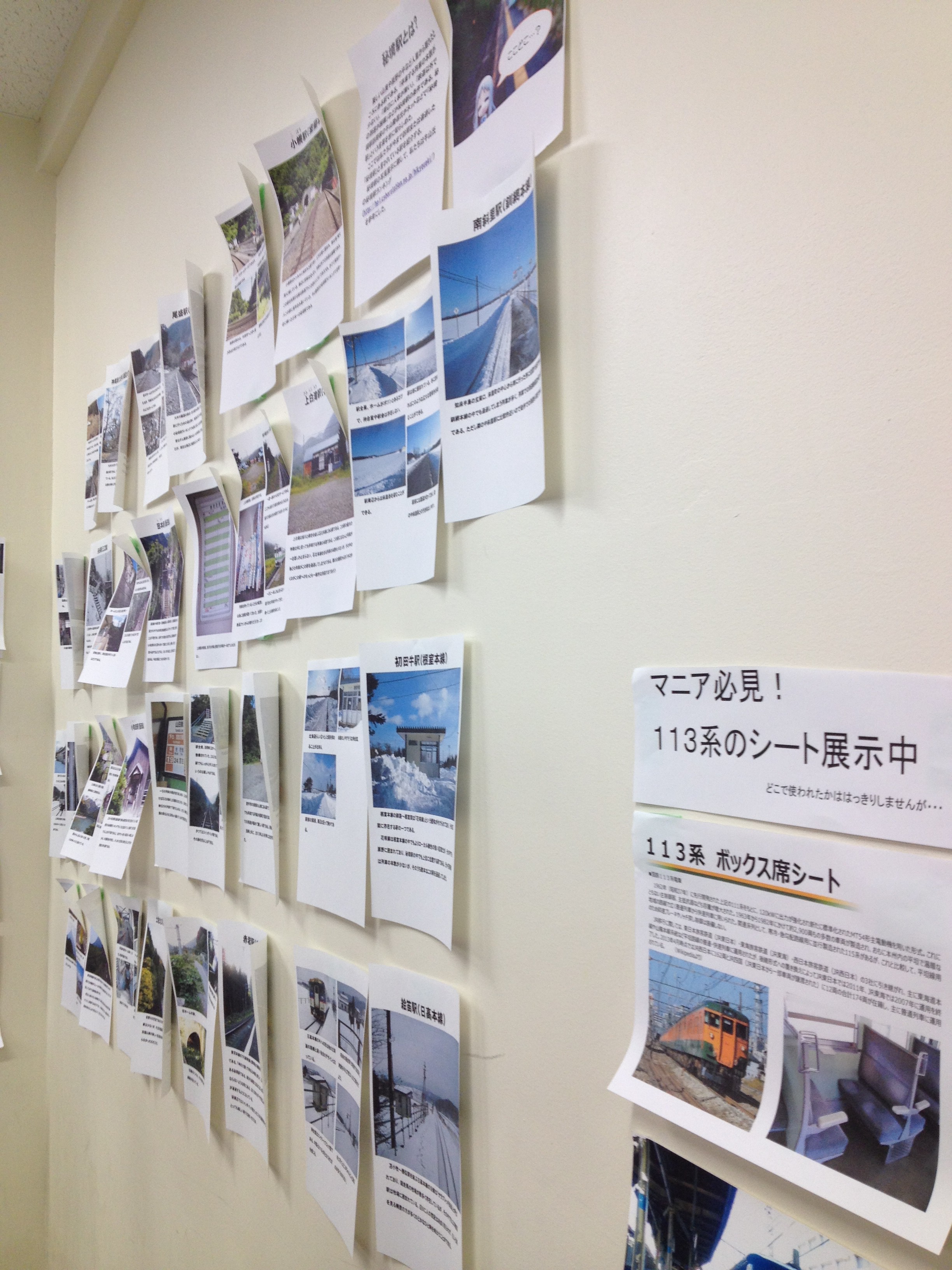 秘境駅・難読駅特集!今年は113系の座席(ボックスシート座面)も展示しました!ふかふかしていてすわり心地も良好。