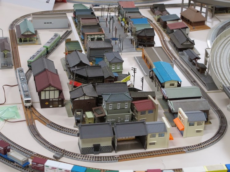 今年は街並みの造営(?)にも力をいれつつ…。小半径カーブレールを利用したLRT線(仮称)です。ジオラマっぽくしてみました。