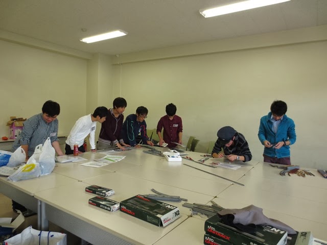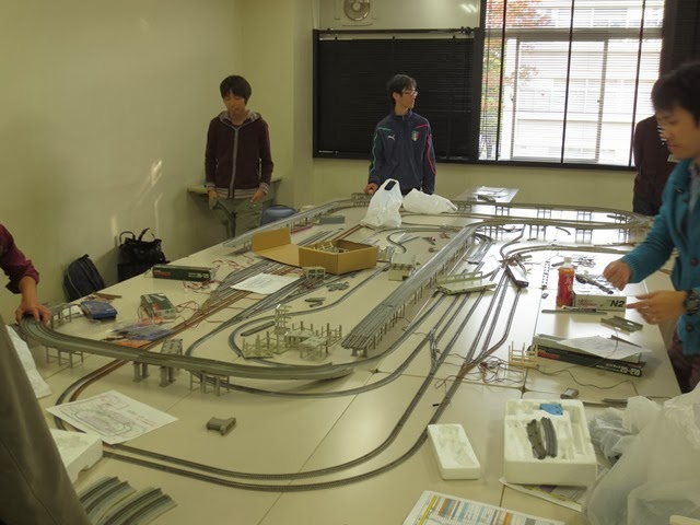 机の設営が終わると各展示の設営スタートです。模型班で模型レイアウトを設営していきます。