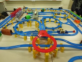 追ってプラレールレイアウトも完成。高速道路のジャンクションのような配線です。