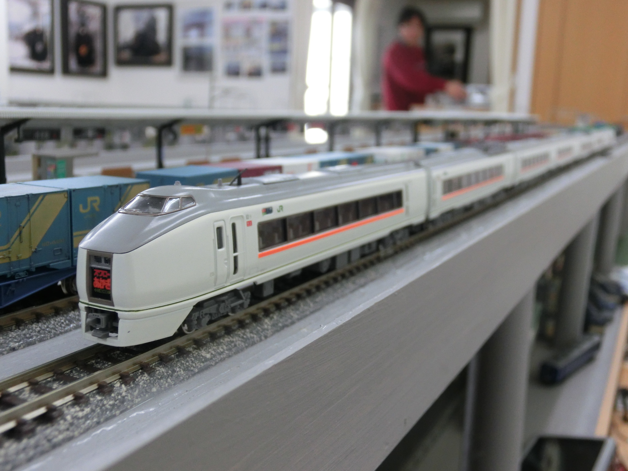 ▲3月から走り始めた特急「スワローあかぎ」が早くも登場しました。会員が加工して作ったオリジナル品です。