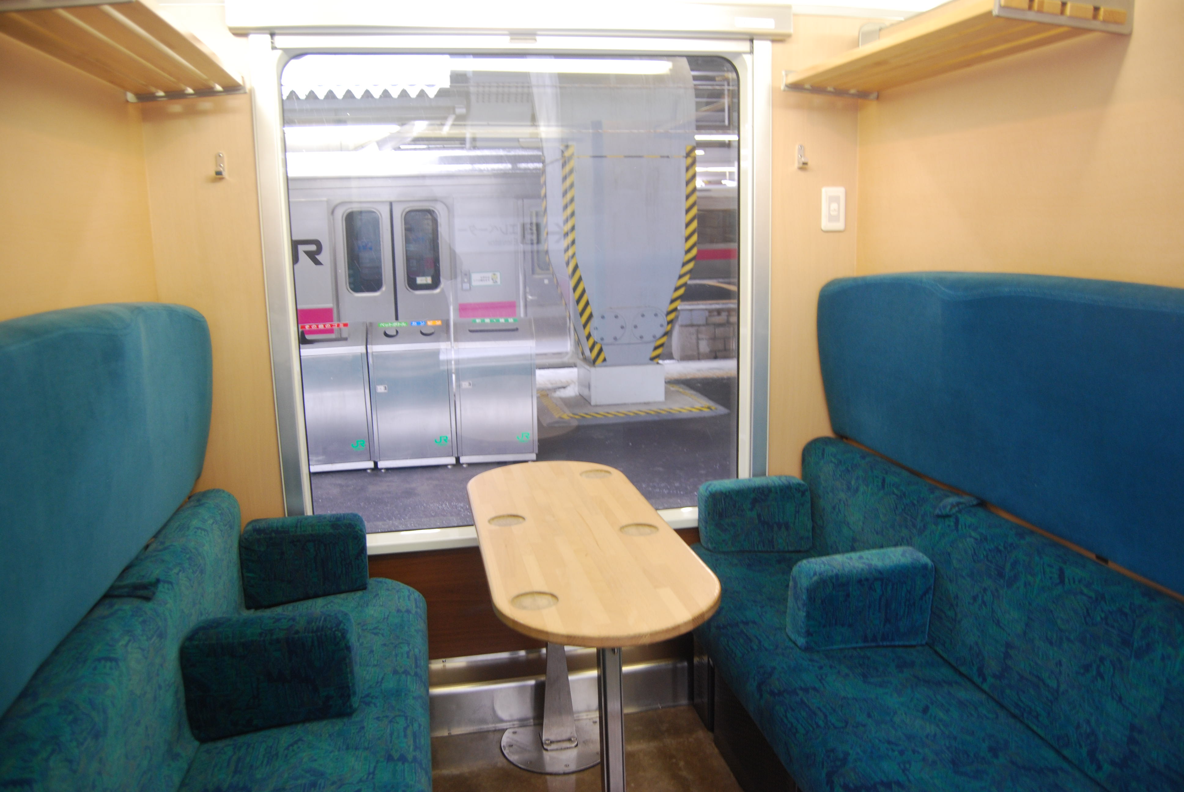 テーブルがついていて軽食をたのしみながら旅を満喫できます。鉄道の旅のアドバンテージはこういった部分にもあると思います。