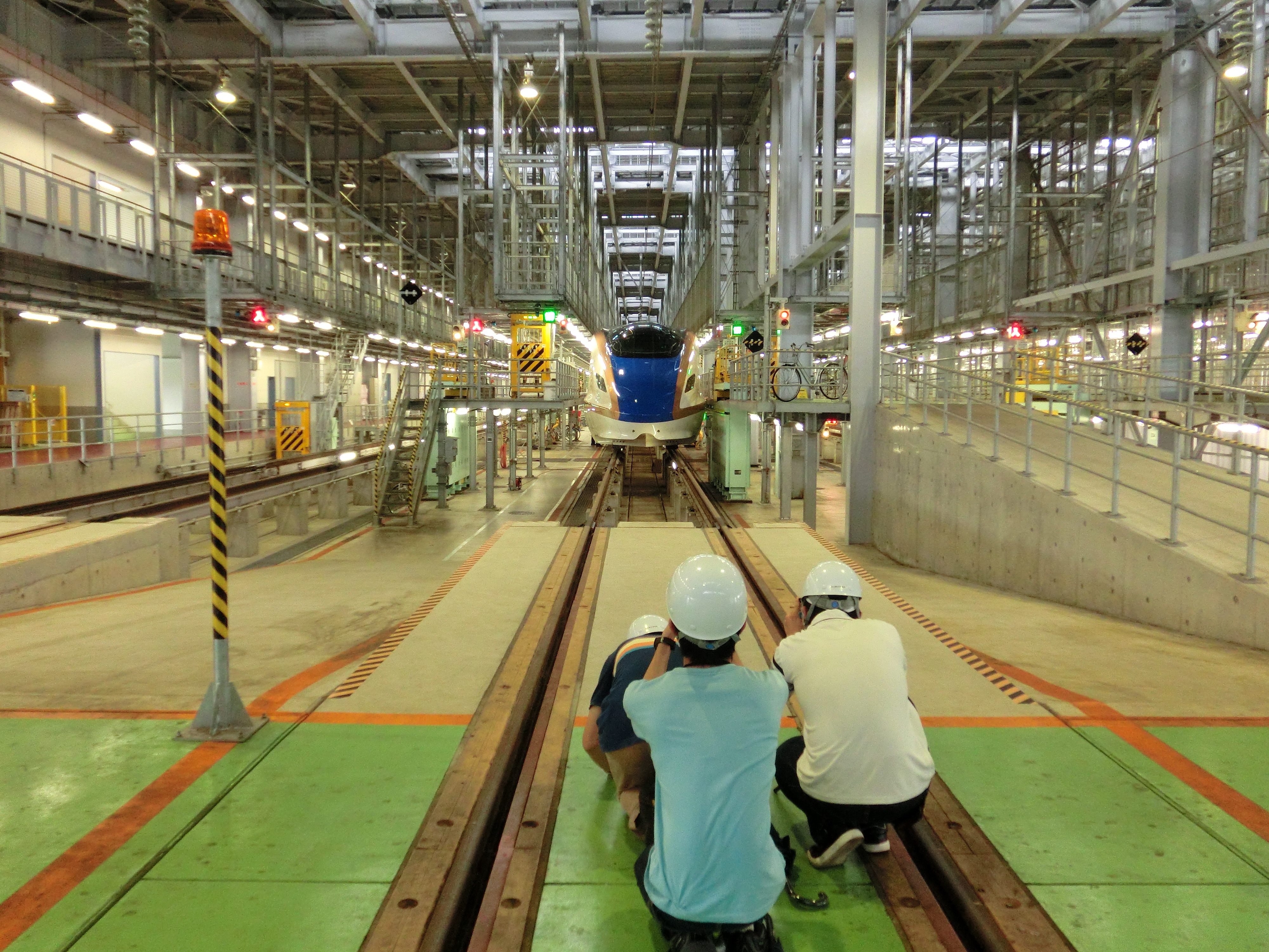 ▲白山総合車両所は、石川県白山市にある北陸新幹線の車両基地です。基本的にはJR西日本所属のW7系の検査を行いますが、頻繁に行われる仕業検査に関してはJR東日本のE7系の検査も行っているようです。写真は仕業交番検査庫で撮ったものですが、普段はなかなか見ることができない車両の足回りまでよく見ることができました