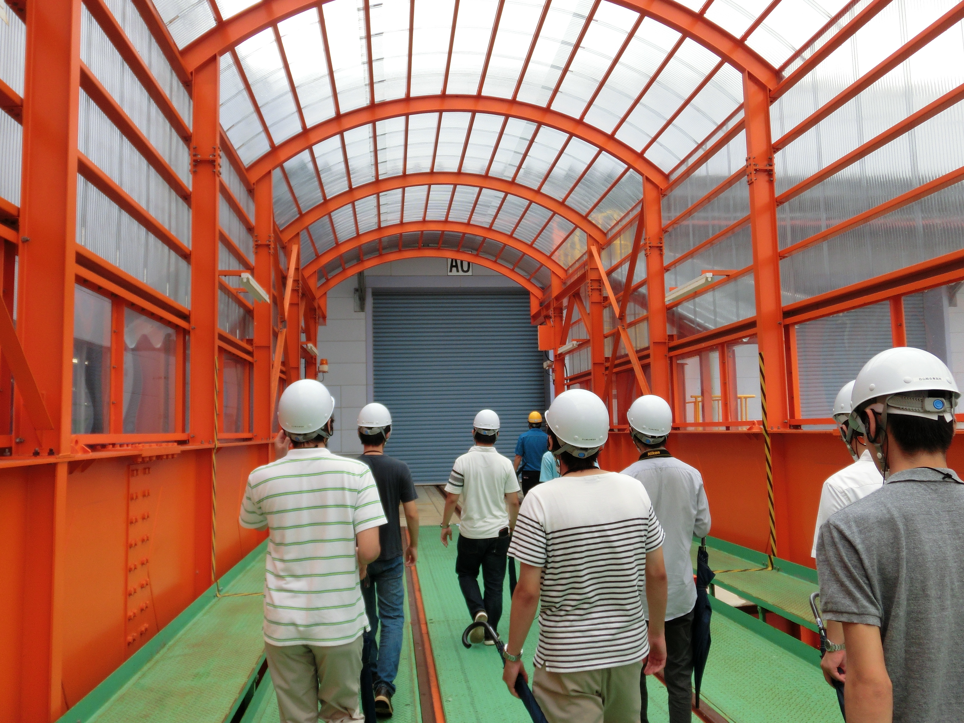 ▲新幹線の車両を平行移動させるトラバーサーと呼ばれる装置です。この後は台車研修場を見学しました