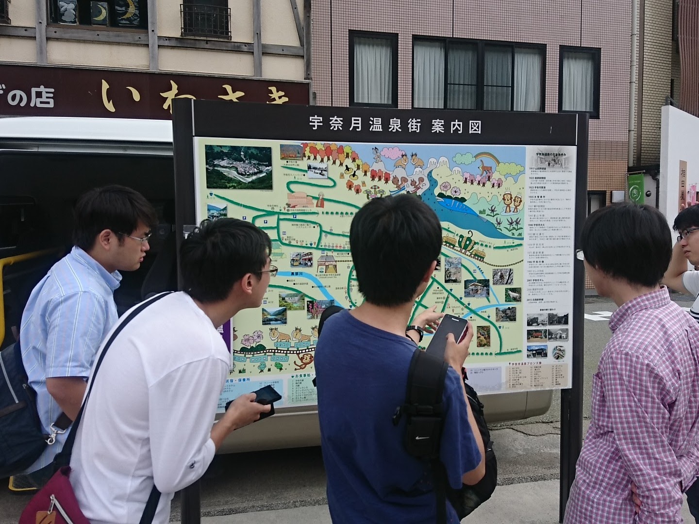 ▲宇奈月温泉駅前の案内板を見ながら観光地を物色しているところです。この後温泉に入るのですが…