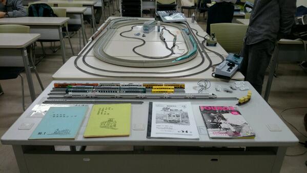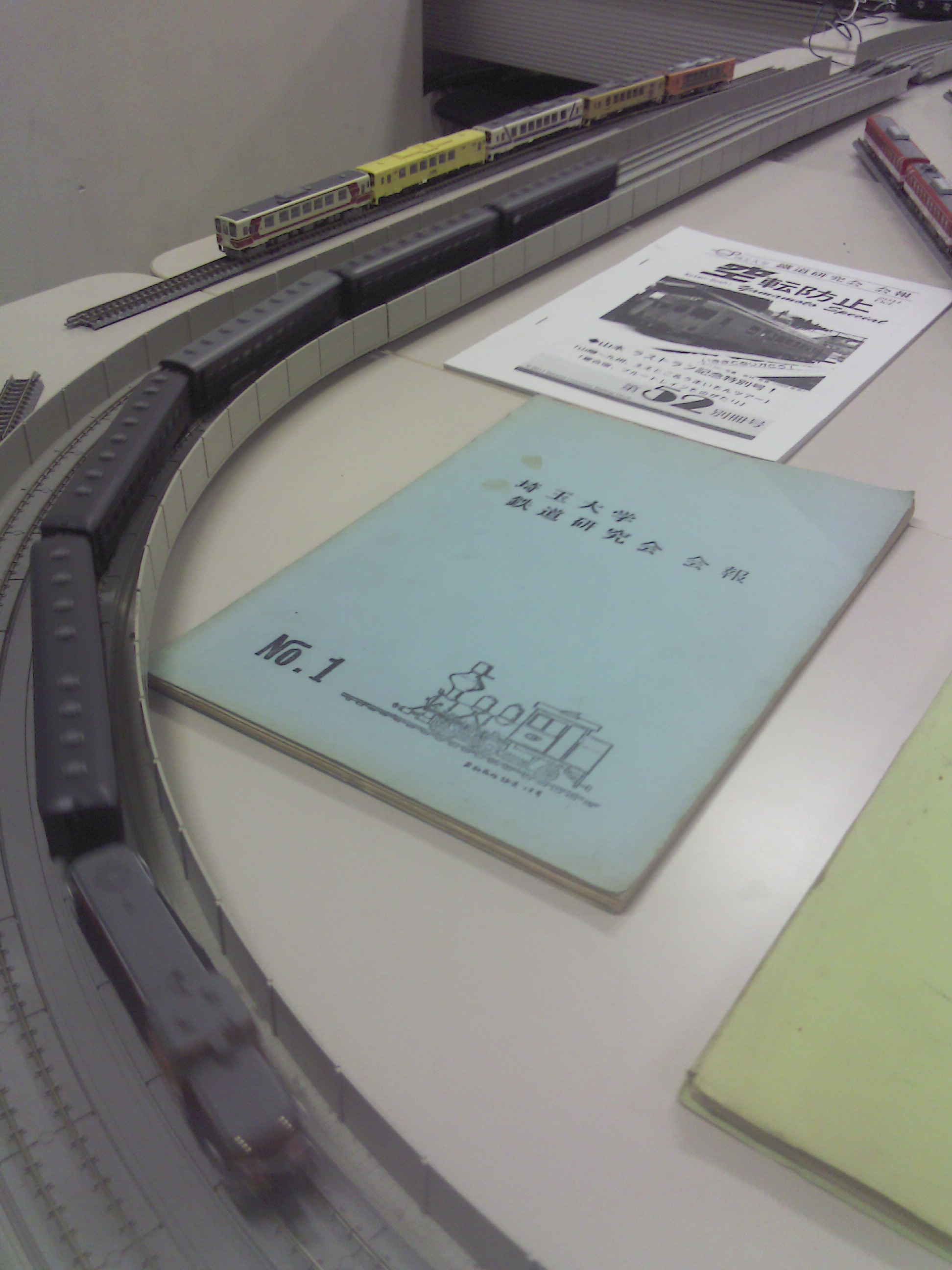 ▲さりげなく置かれている本は記念すべき埼玉大鐵研会報第1号!1970年代発刊の会報誌で当時はパソコンもワープロもなかった時代!手書きの誌面が当会の歴史を物語ります。