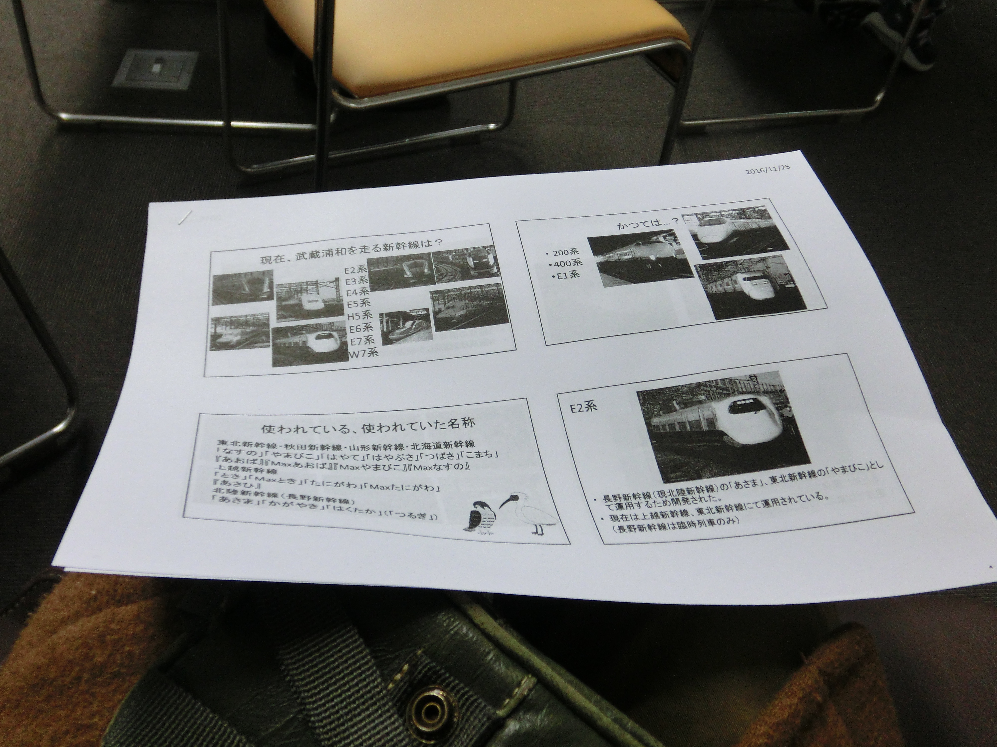 本年度は「新幹線は顔だけじゃない」というテーマで、コミセンまつりの会場となっているサウスピアの目の前を通過するJR東日本の新幹線について、各車両の特徴や見分け方などを紹介するプレゼンを行いました