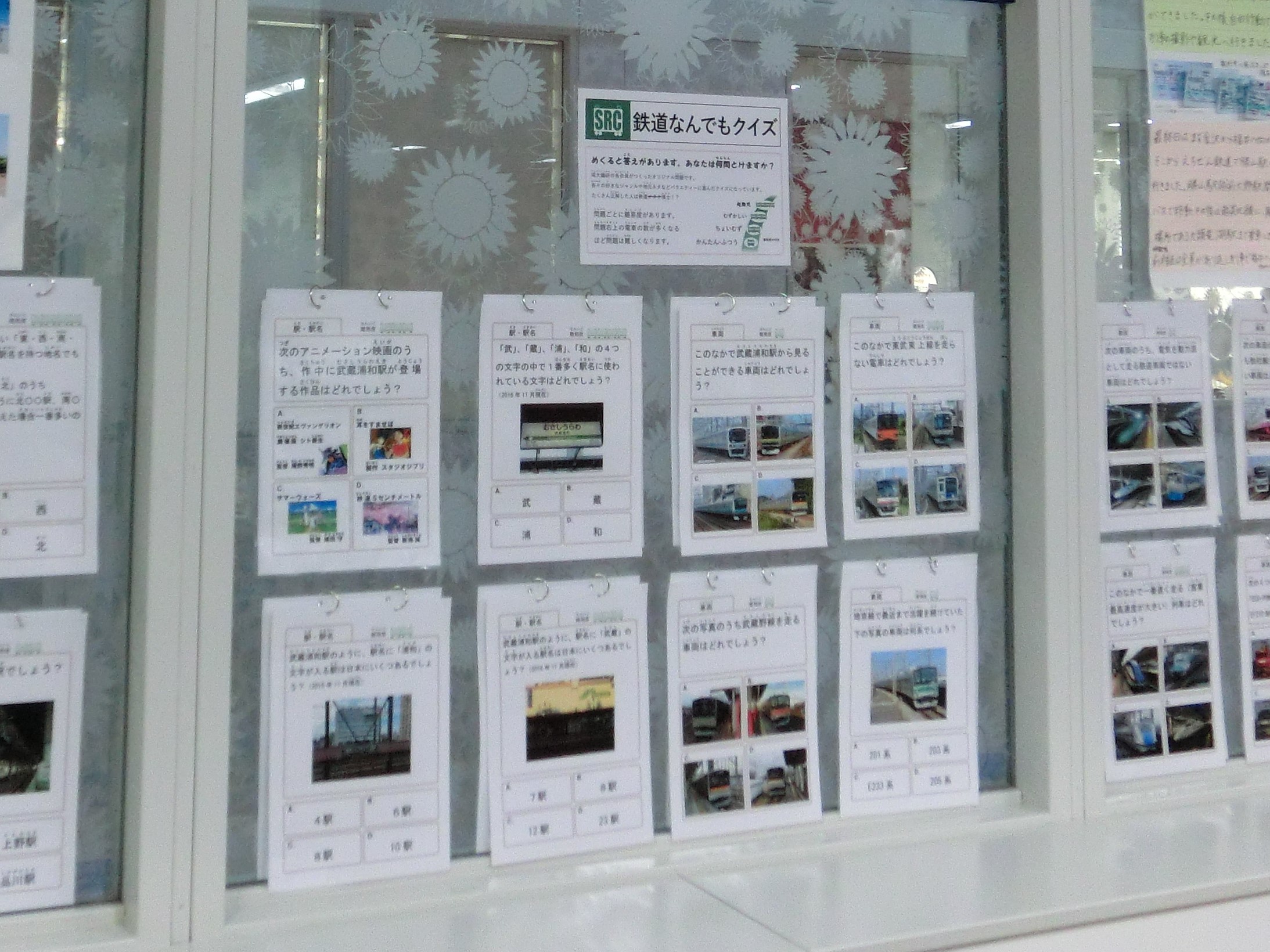 「鉄道なんでもクイズ」は当会の展示ではおなじみ?となっている難読駅名クイズのスピンオフ企画として車両、駅などに関する4択クイズを4段階の難易度を設定して展示しました