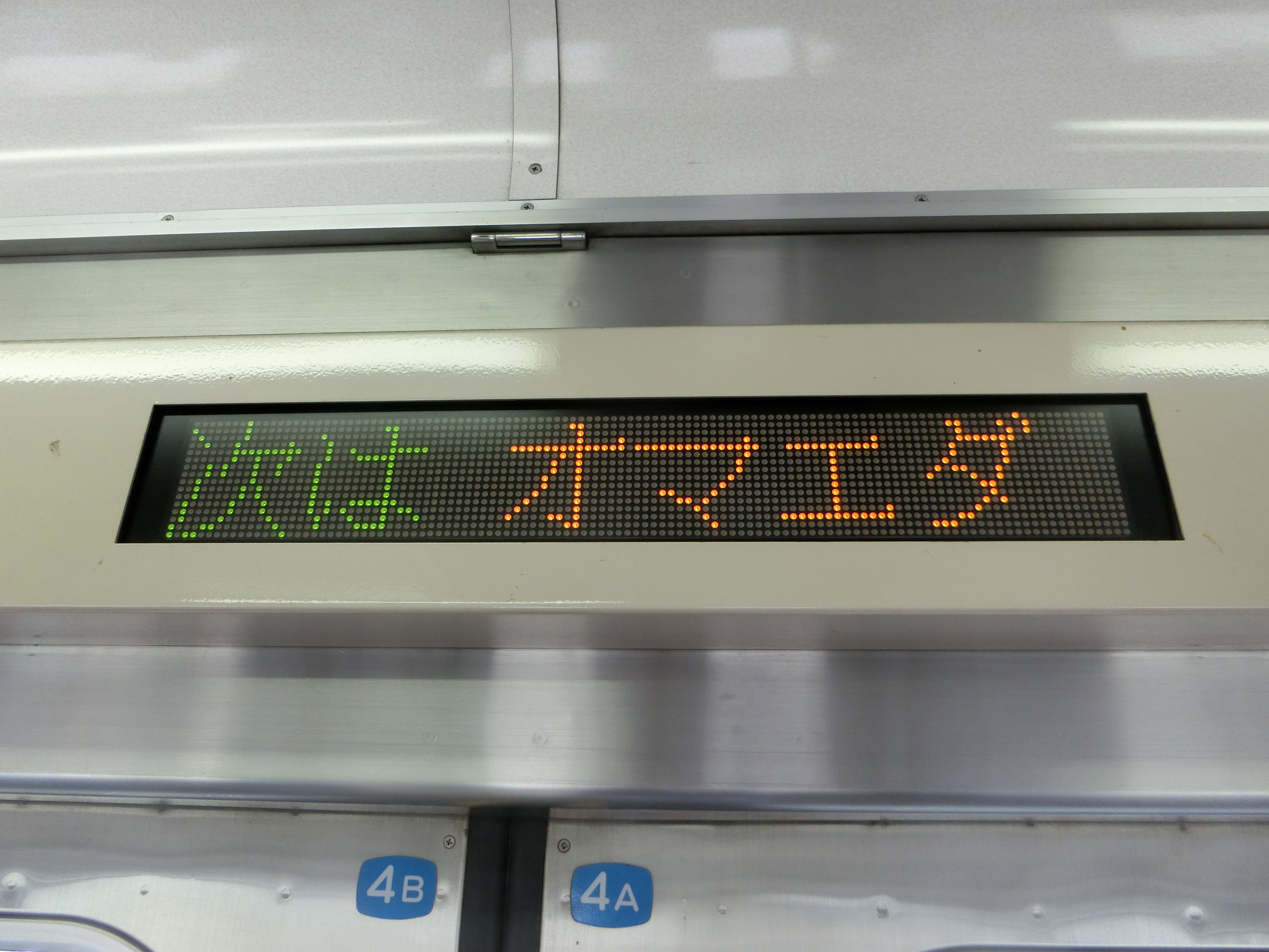 長瀞へ向かう道中には小前田駅という駅があるのですが、小前田駅の手前にある、ふかや花園駅を発車すると、車内に設置されているドア上の電光掲示がなかなか面白いことになります。