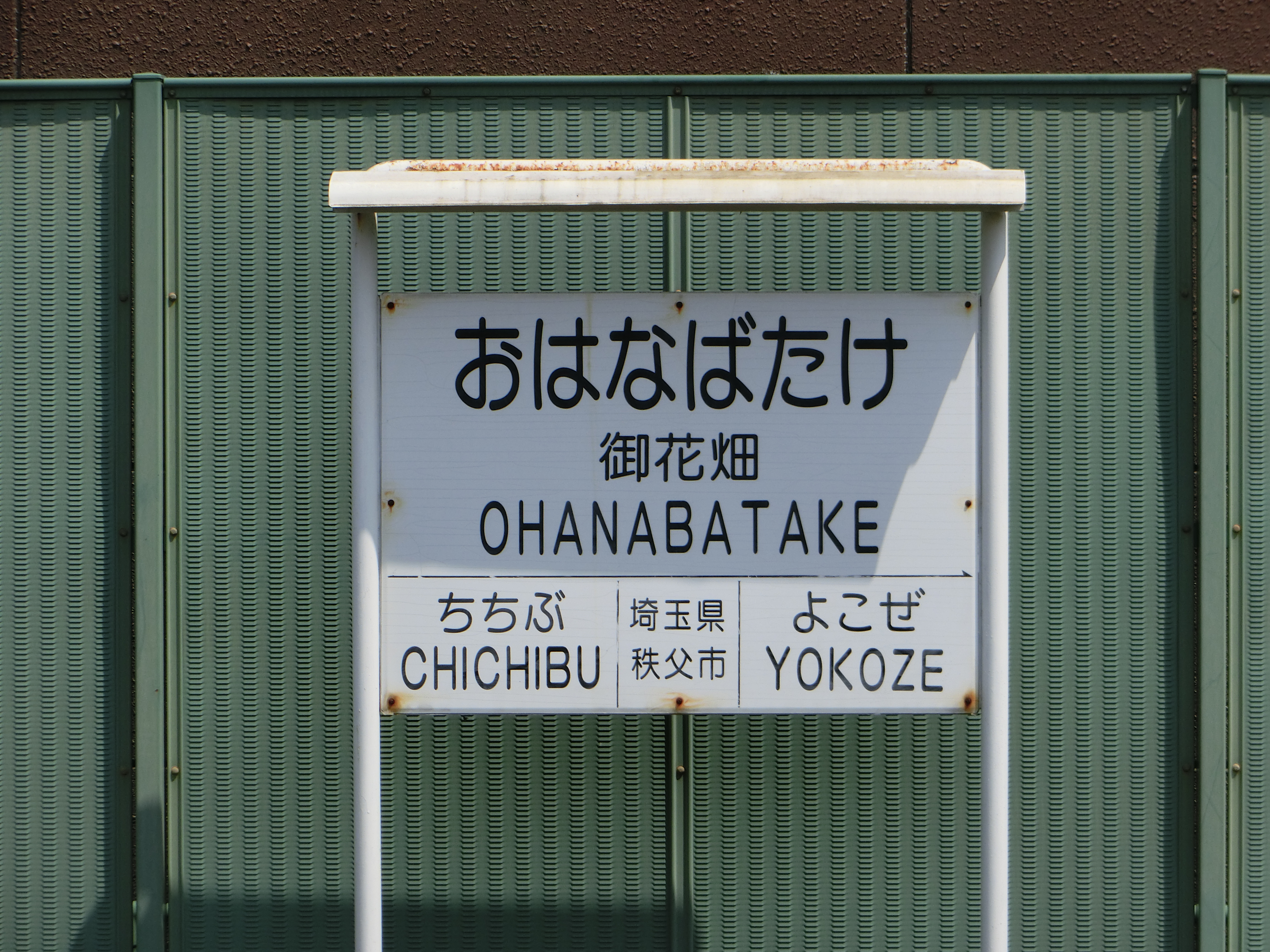 ↑御花畑駅には2つのホームがあるのですが、そのうち西武線との直通列車が利用するホームの駅名標では、隣駅の表記が横瀬になっています。