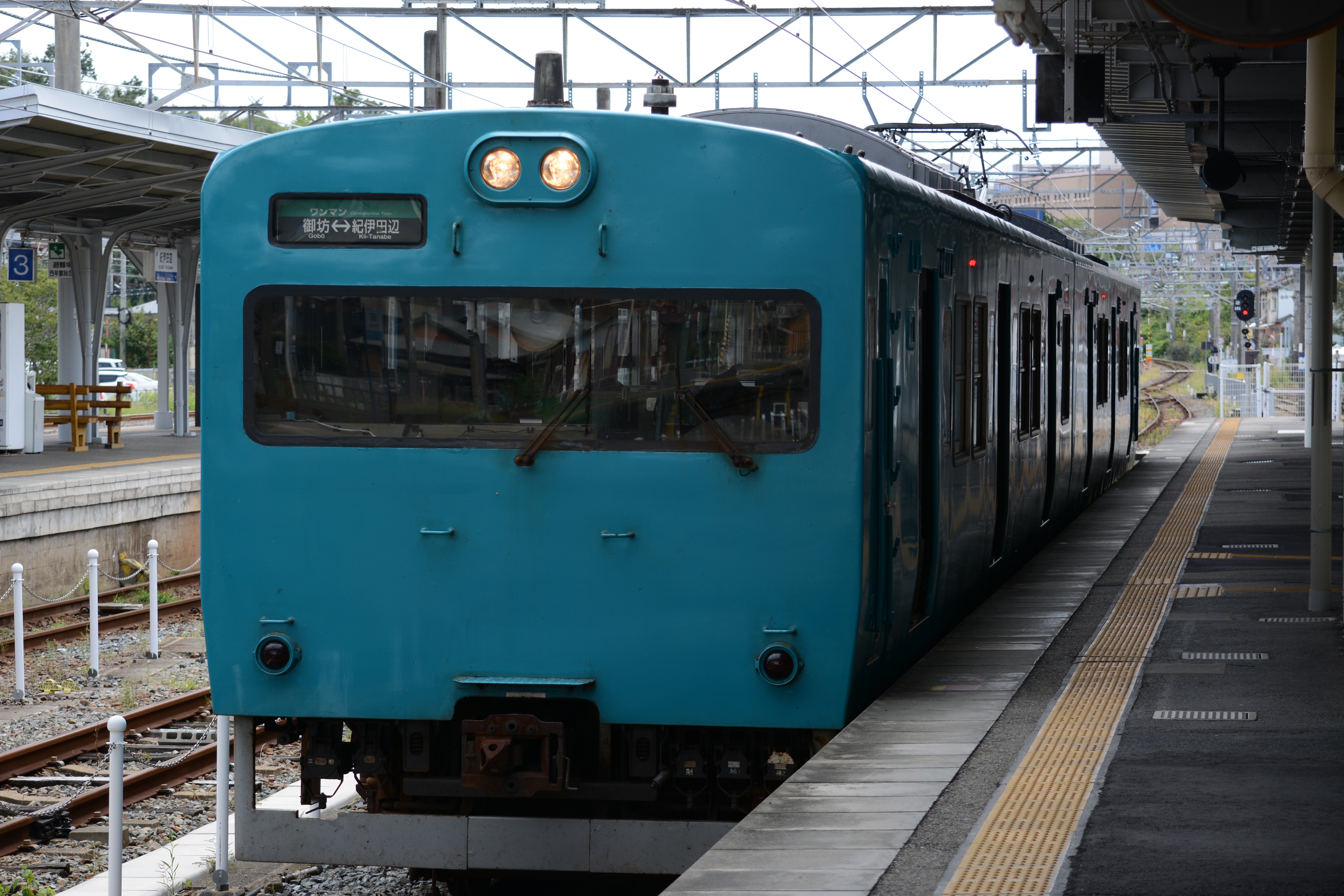 御坊駅に向かう2354M普通列車は、先頭車化改造を受けた113系。かつて福知山で活躍していた“サンパチくん”とともに『迷車』といわれる車両の一つです。