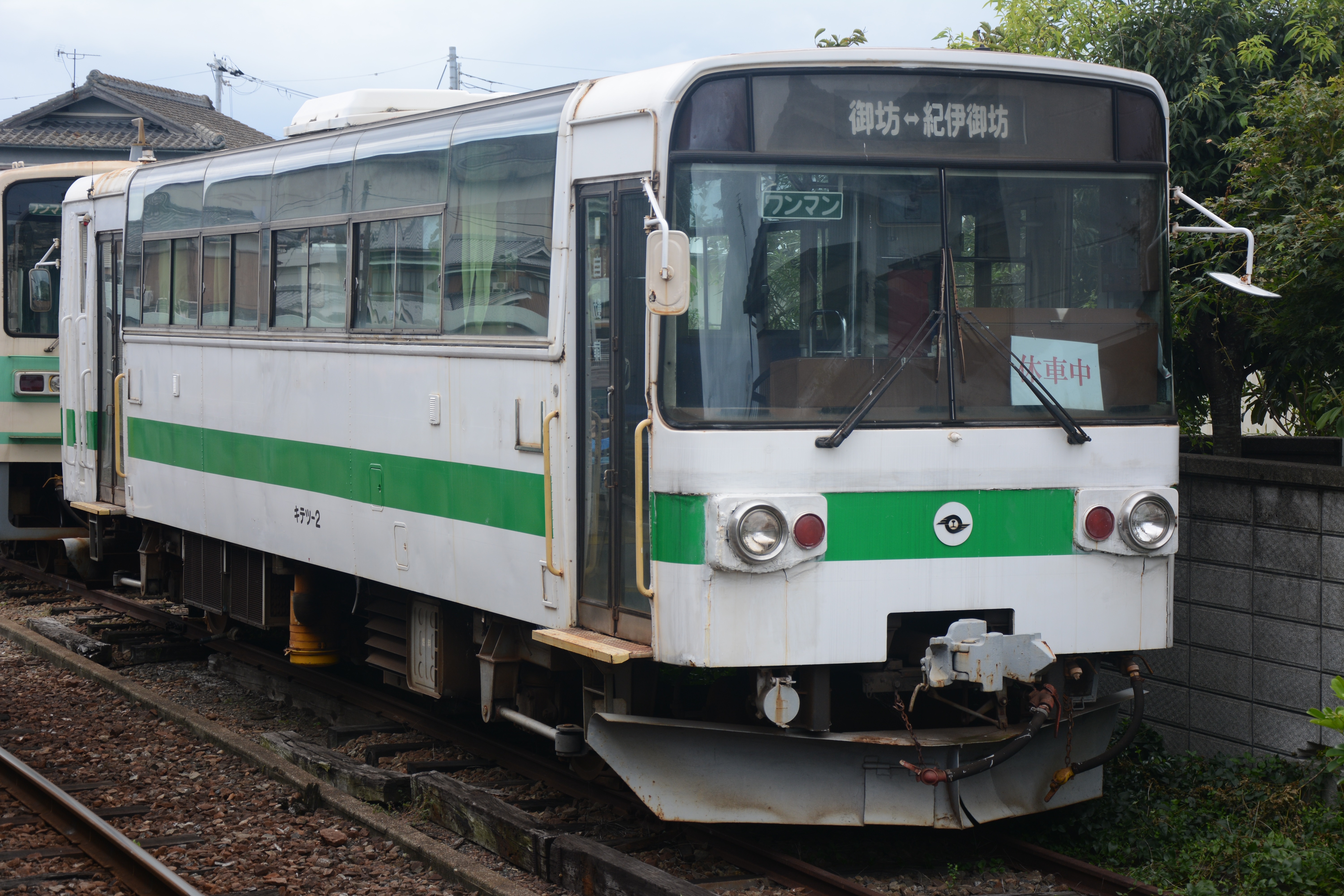 ▲駅構内に保管されているキテツ2号。全国的な『レールバス』転換が起きた初期の面持ちが残る『2軸車』である。(紀伊御坊駅撮影)