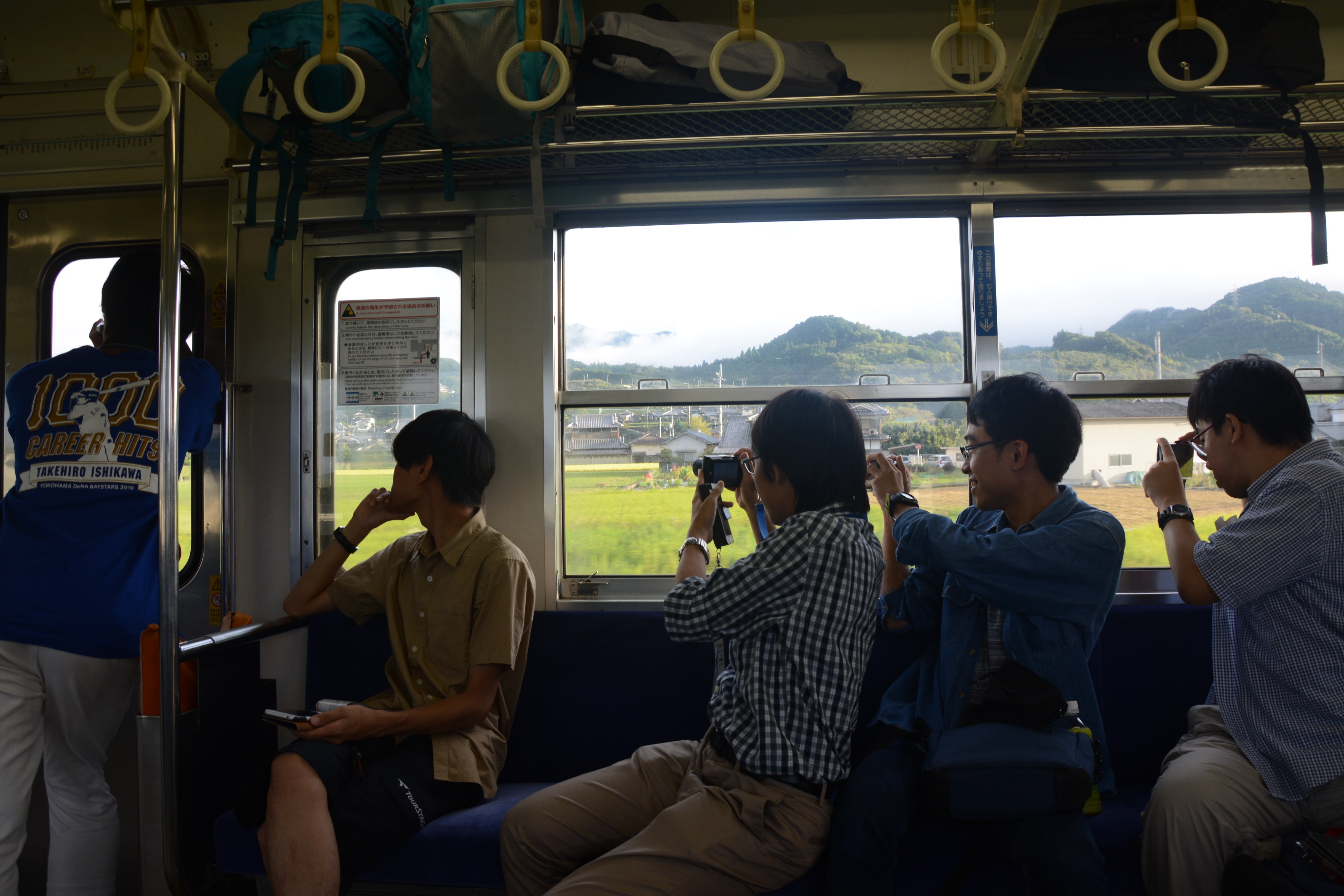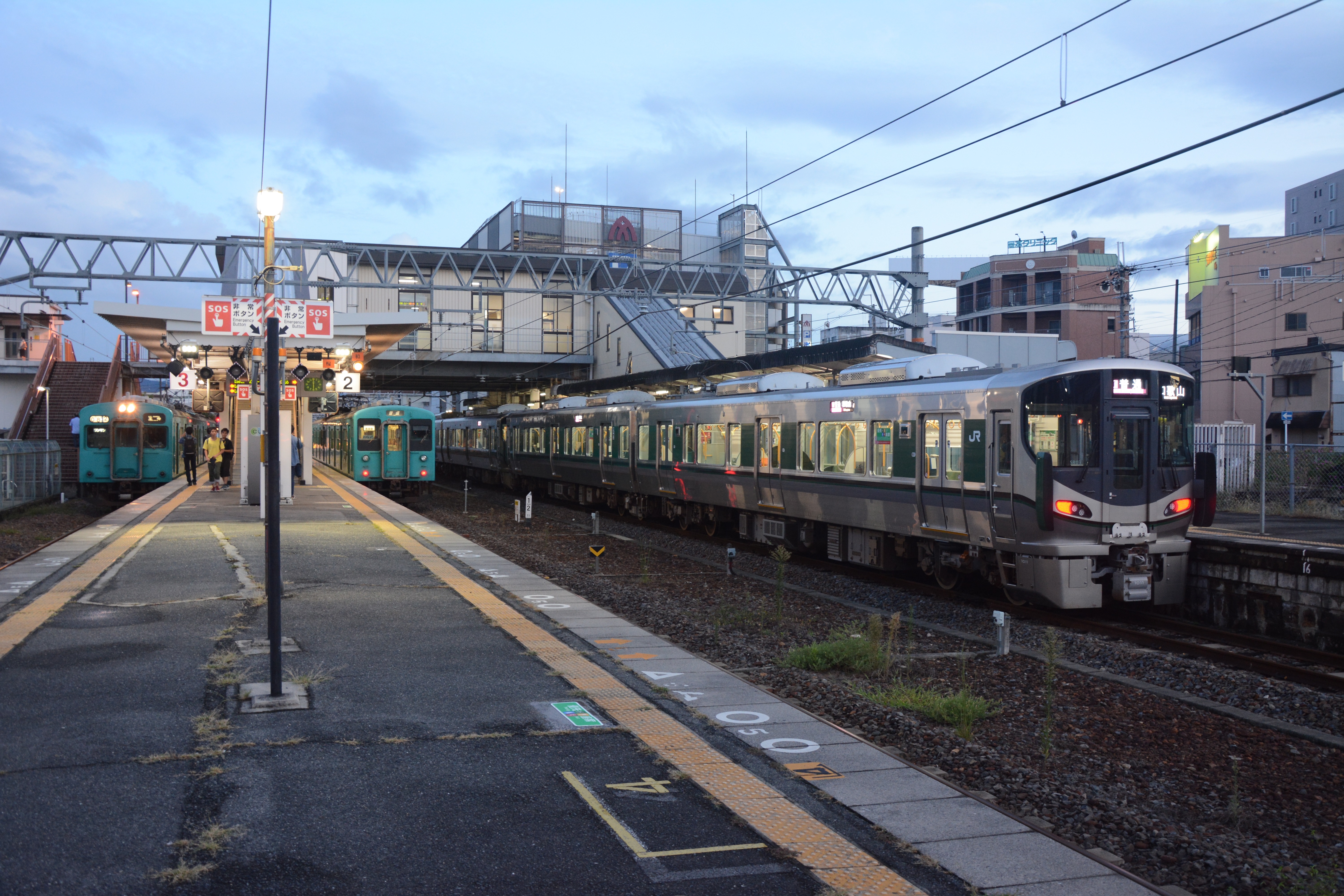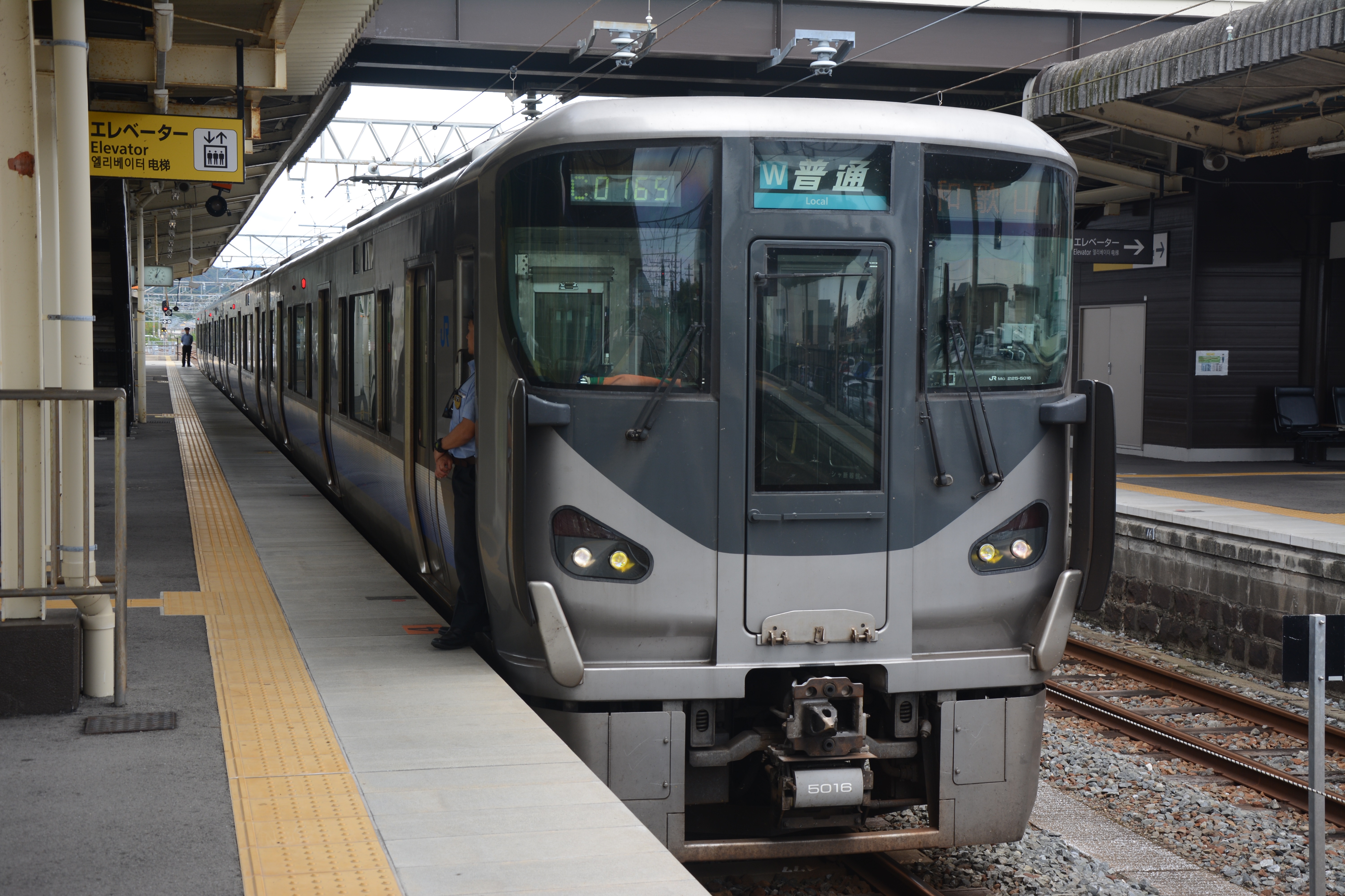 364M普通列車(225系5000番台)に乗りこみ、和歌山都市圏の複線区間を走り抜けていきます。海南駅を過ぎると本格的に都市近郊の様相を呈し、立ち客が出るほどの混雑でした。