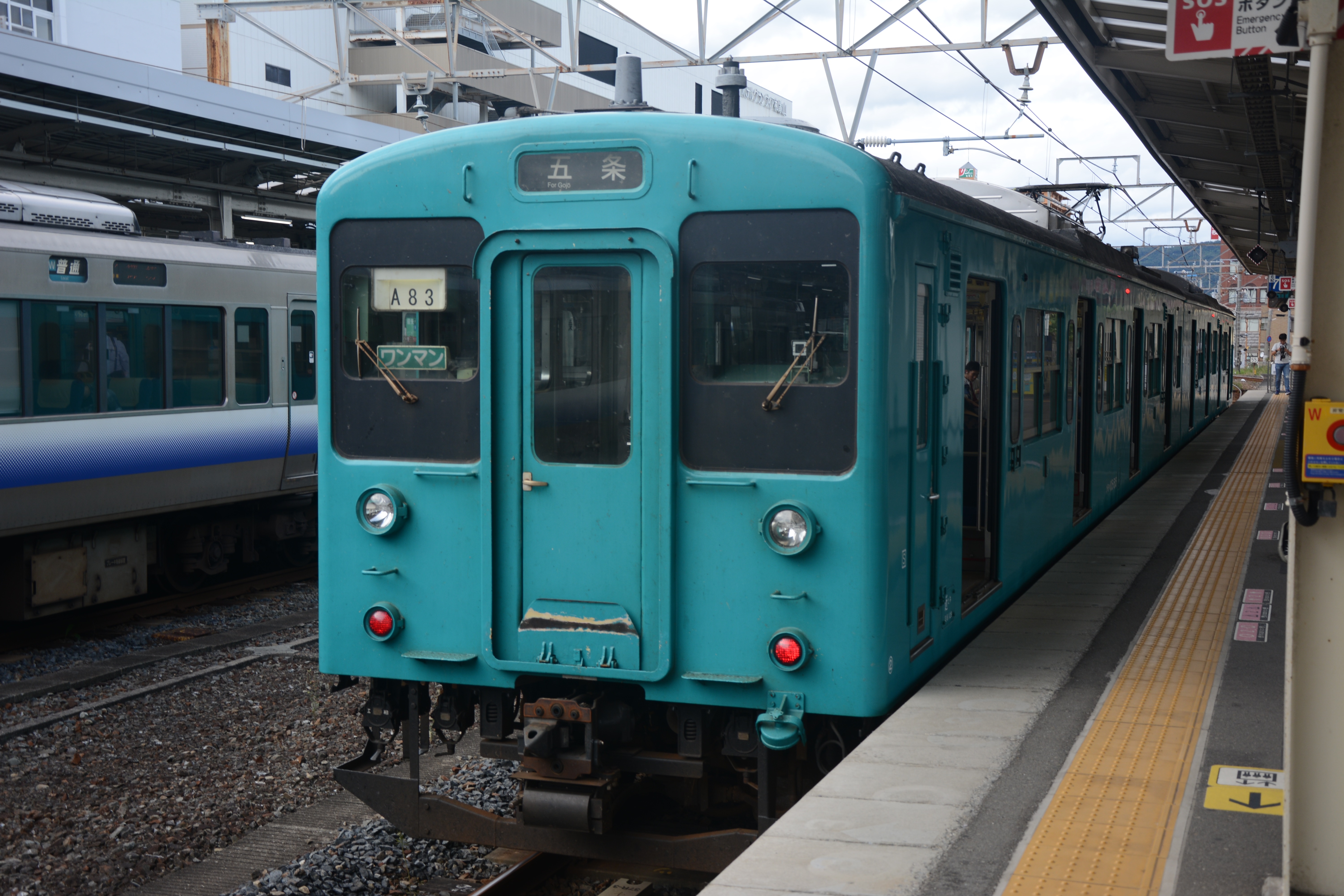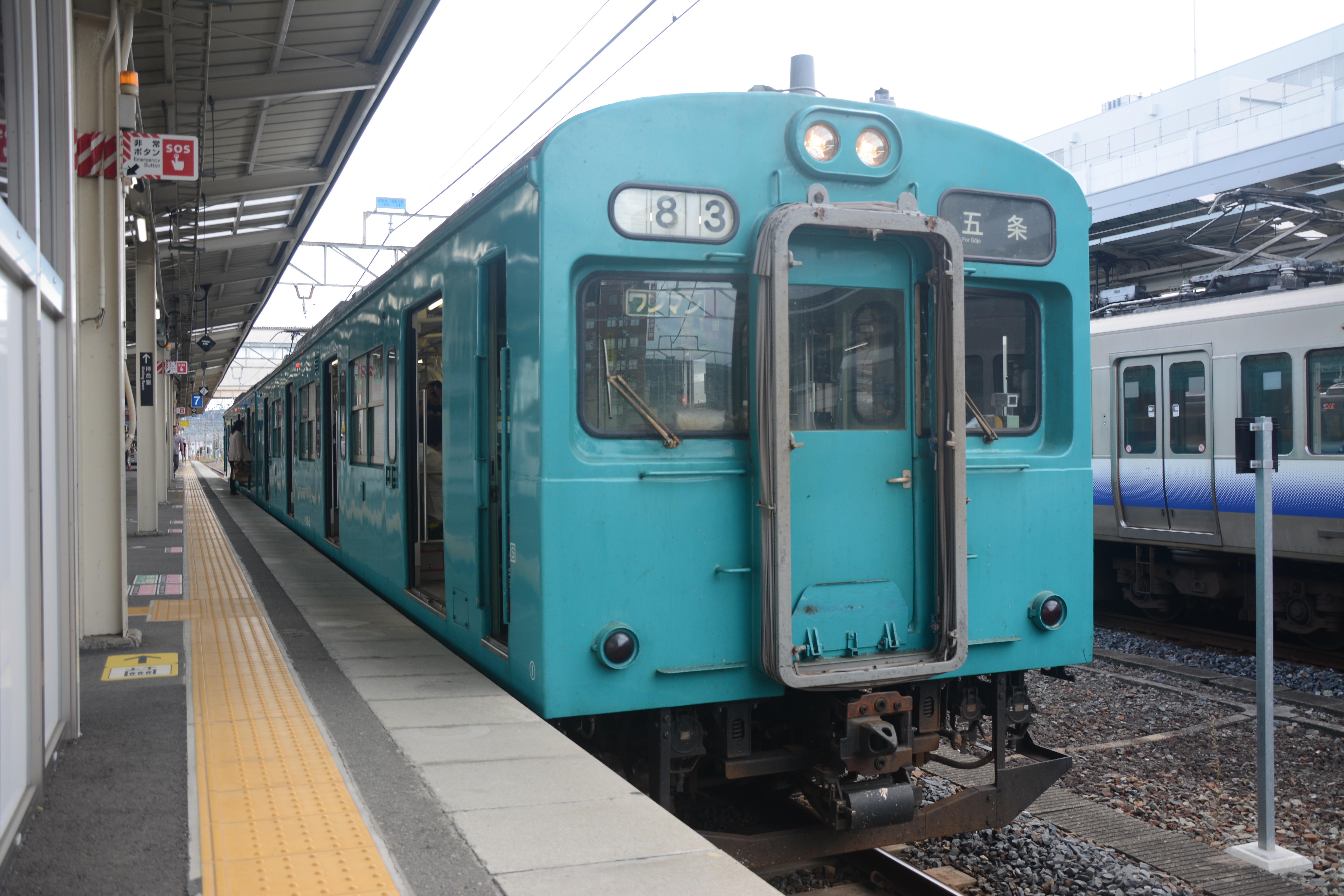 まずは1464M普通列車(105系4扉車)で五条駅まで。2両とも元103系1000番台ですが、王寺寄りクハが元クハ103、和歌山寄りクモハが元モハ103に運転台を取り付けたものです。