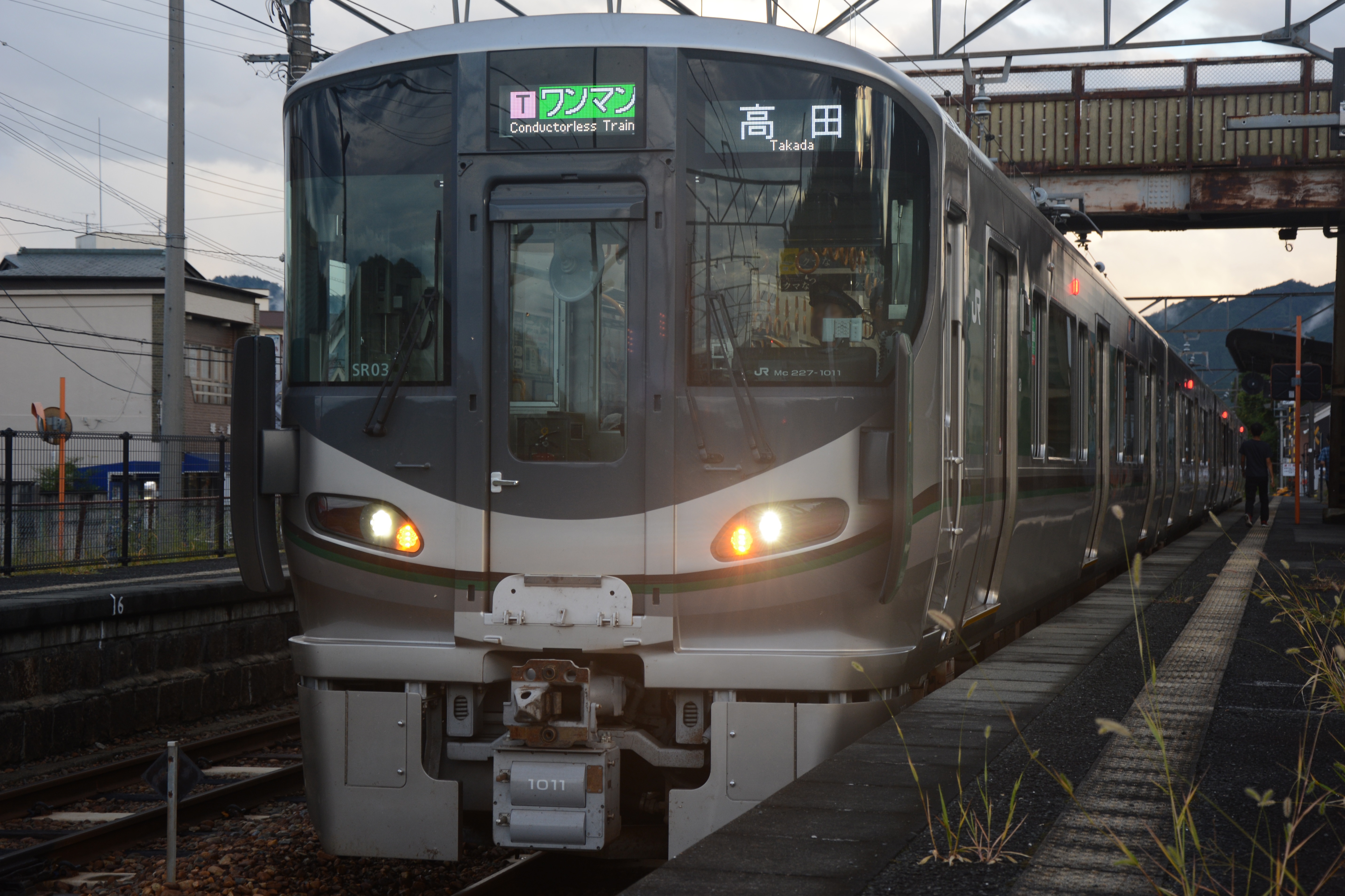 五条駅で高田行きに乗り換えます。乗車した車両は最新鋭の227系1000番台、かつては117系が走っていたようですが、2019年3月のダイヤ改正で置き換えられたようです。清潔感のある車内に準備工事の施された車載IC改札機、広島地区と同じ自動放送、グラスコックピットの運転台など、会員の好きなジャンルをくすぐるものばかりでした。