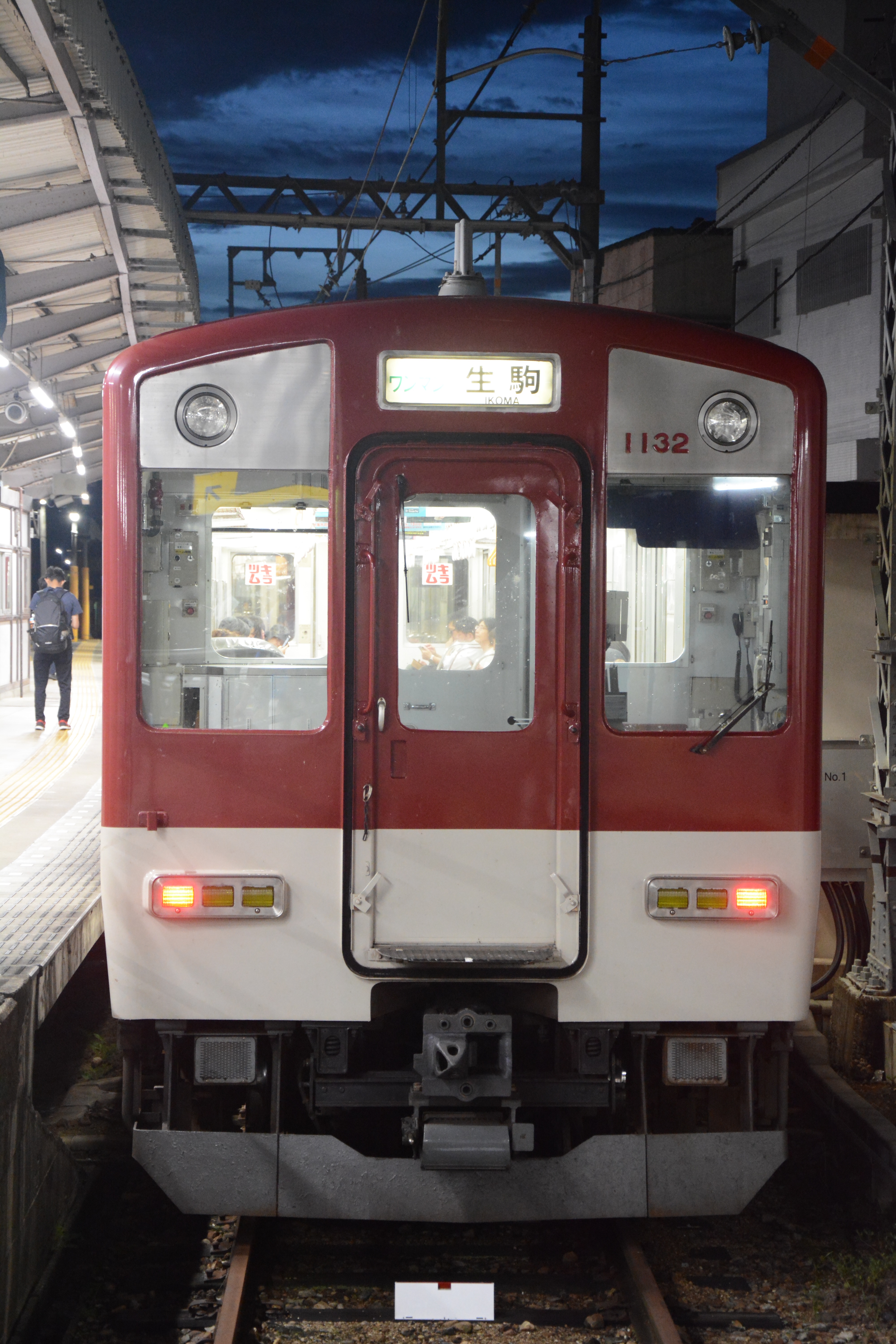 王寺駅には18:18に到着。ここで近鉄生駒線に乗り換え、生駒駅に向かいます。