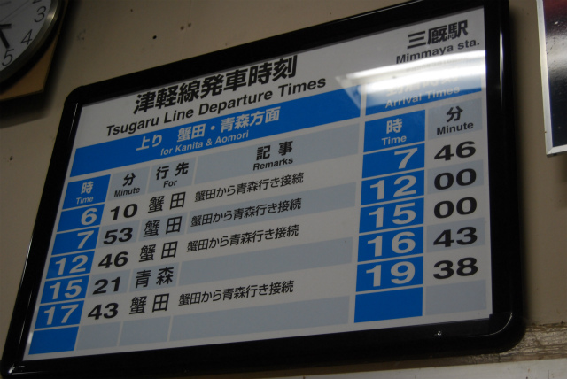 ↑三厩駅からは17時43分発の蟹田行で蟹田駅へ戻ります。実はこの列車、三厩駅の終電となっています。終電がこれだけ早いというのも珍しいものです。