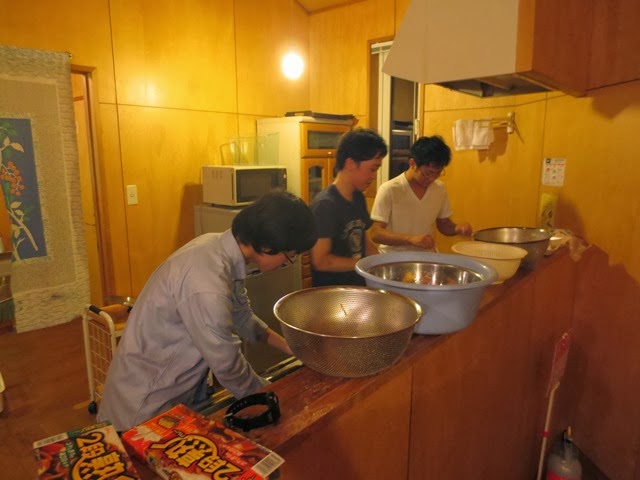 宿に到着してもまだまだやることはいっぱいあります。「グリーンバイオ村」では素泊まりのため、夕飯を作る必要があります。今回はあらかじめ必要な材料をチルドゆうパックで埼玉から郵送するなど工夫をしながら食料調達を円滑に進め、当日は下宿組を中心とした皆様でカレー作りを進めていただきました。(宿の事務所が坂の下のため、郵送した食材の運びだしがなかなか大変でした…)
