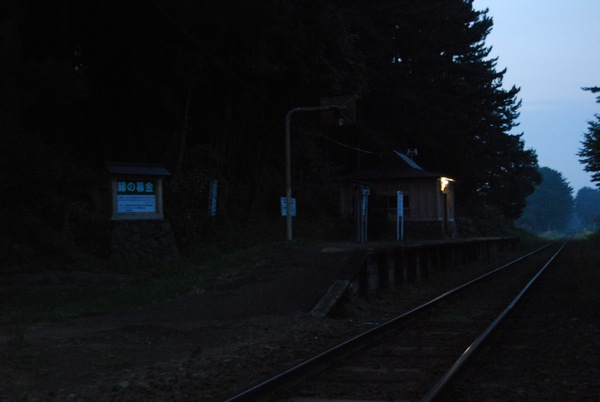 ↑到着した直後の毘沙門駅。実際はもっと真っ暗で不気味な雰囲気が漂っていました。