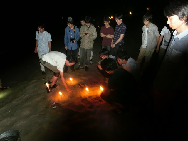 ▲食事後は花火ということで砂浜へ。