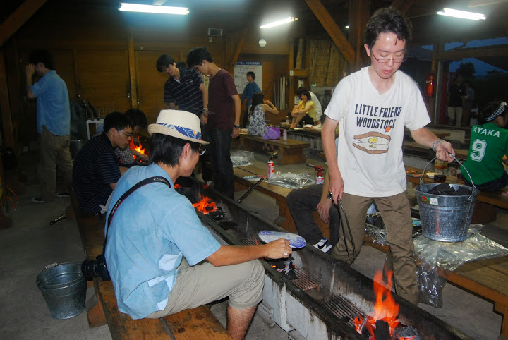 ▲1日目の夕食はバーベキュー!ということで到着後は準備を進めます。やっと火が付いてきました!