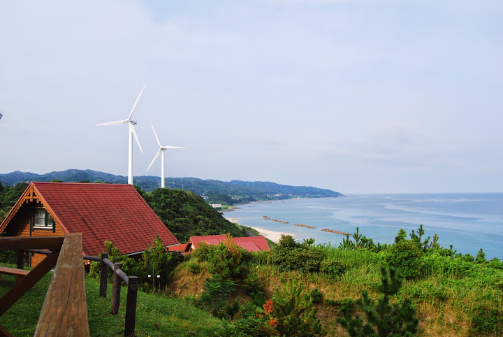 ▲1日目の宿は山陰本線小田駅近くの「キララコテージ」(写真は翌朝撮影) 海に面した非常に眺めのすばらしいお宿でした。