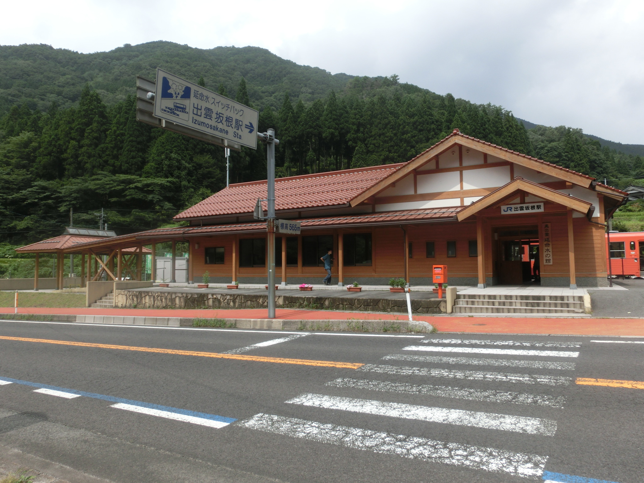 ▲途中の出雲坂根駅では停車時間を利用して…