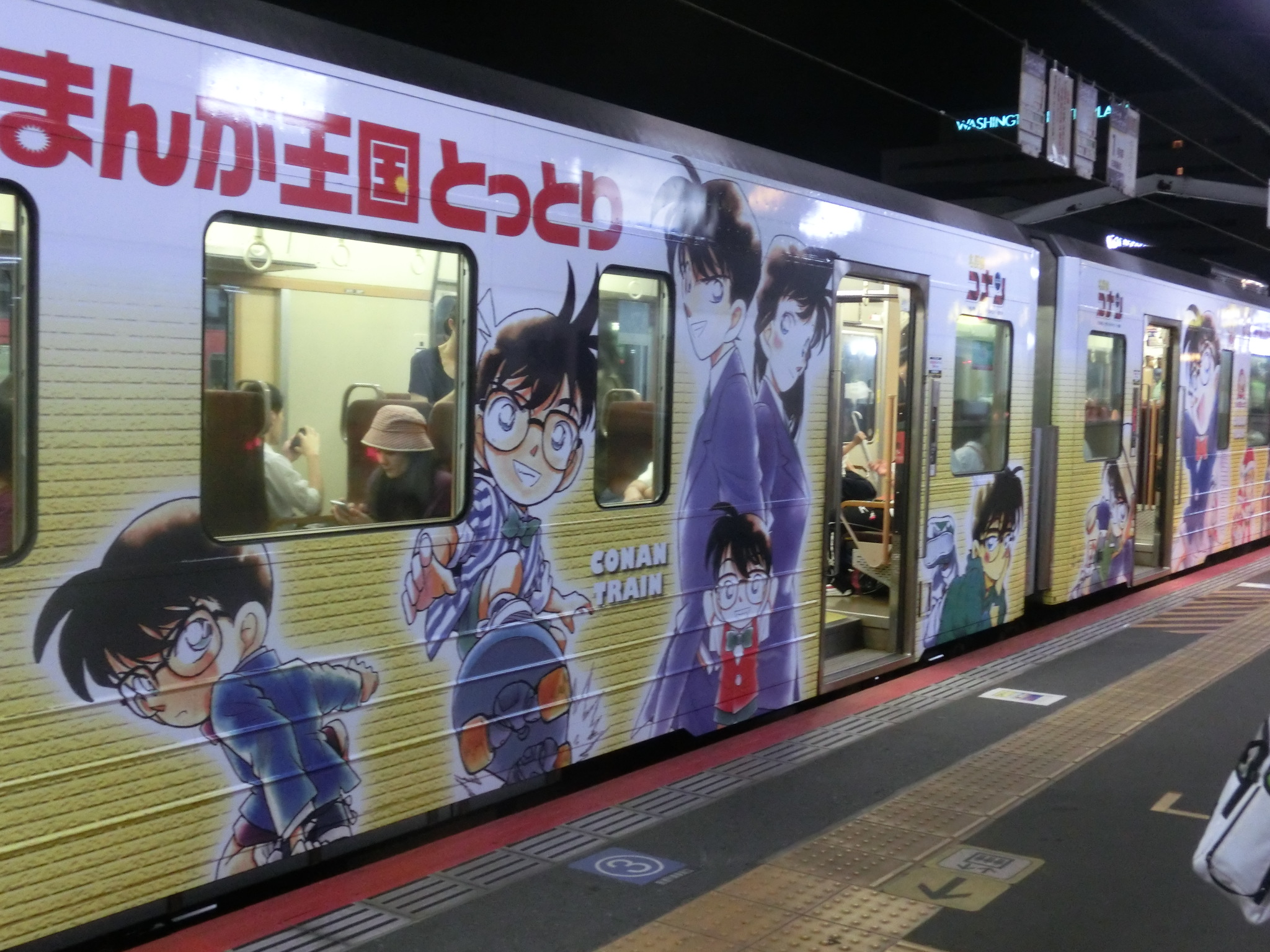 ▲さらに山陰本線伯耆大山駅で鳥取行きの列車に乗り継ぎ、鳥取駅で下車。偶然にも名探偵コナンのラッピング列車に乗ることが出来ました。