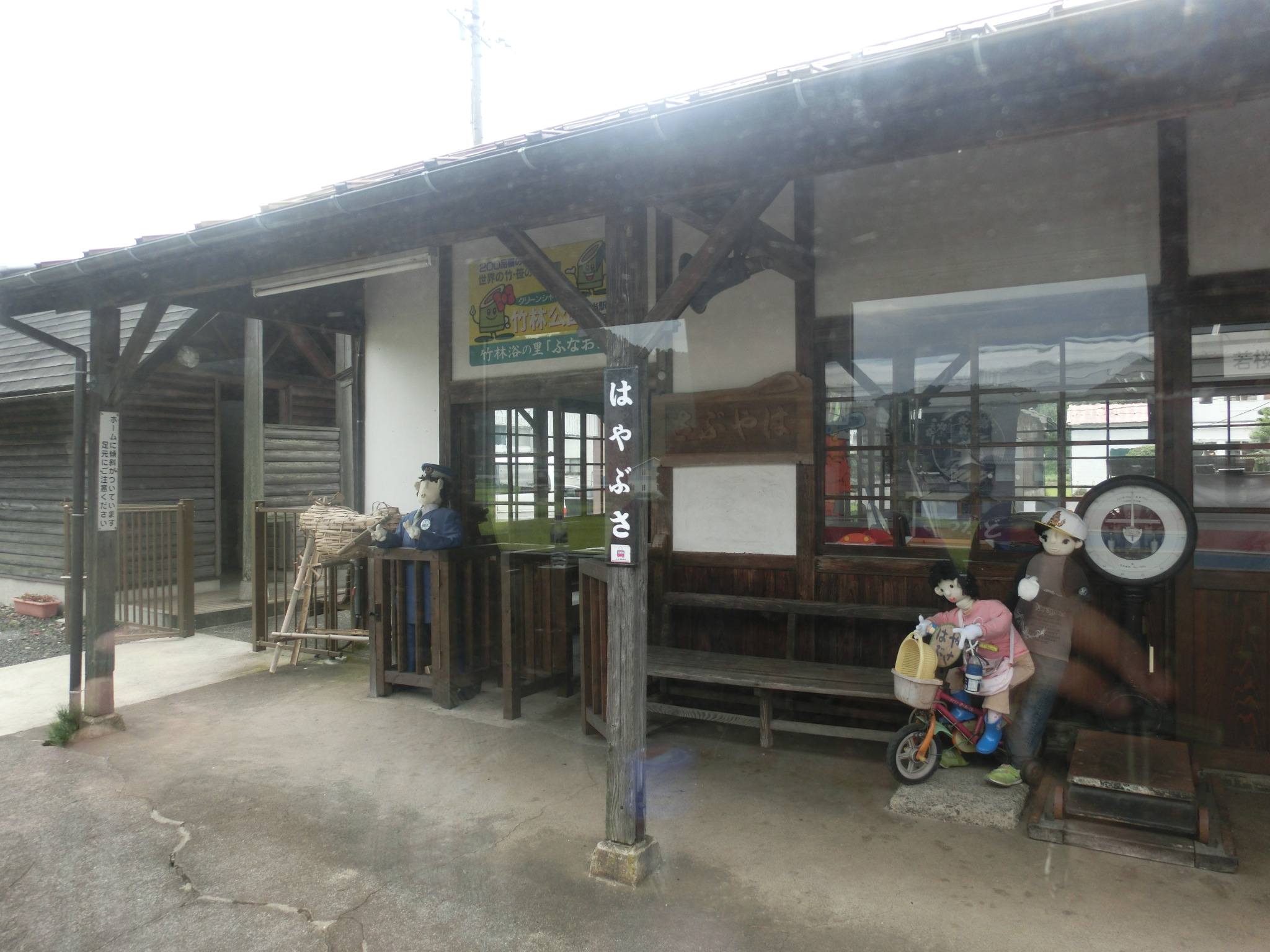 ▲若桜鉄道線に入ると、無人駅にかかしが置いてあるのが目立ちます。「ふるさとかかし」という町おこしの一環だそうです。
